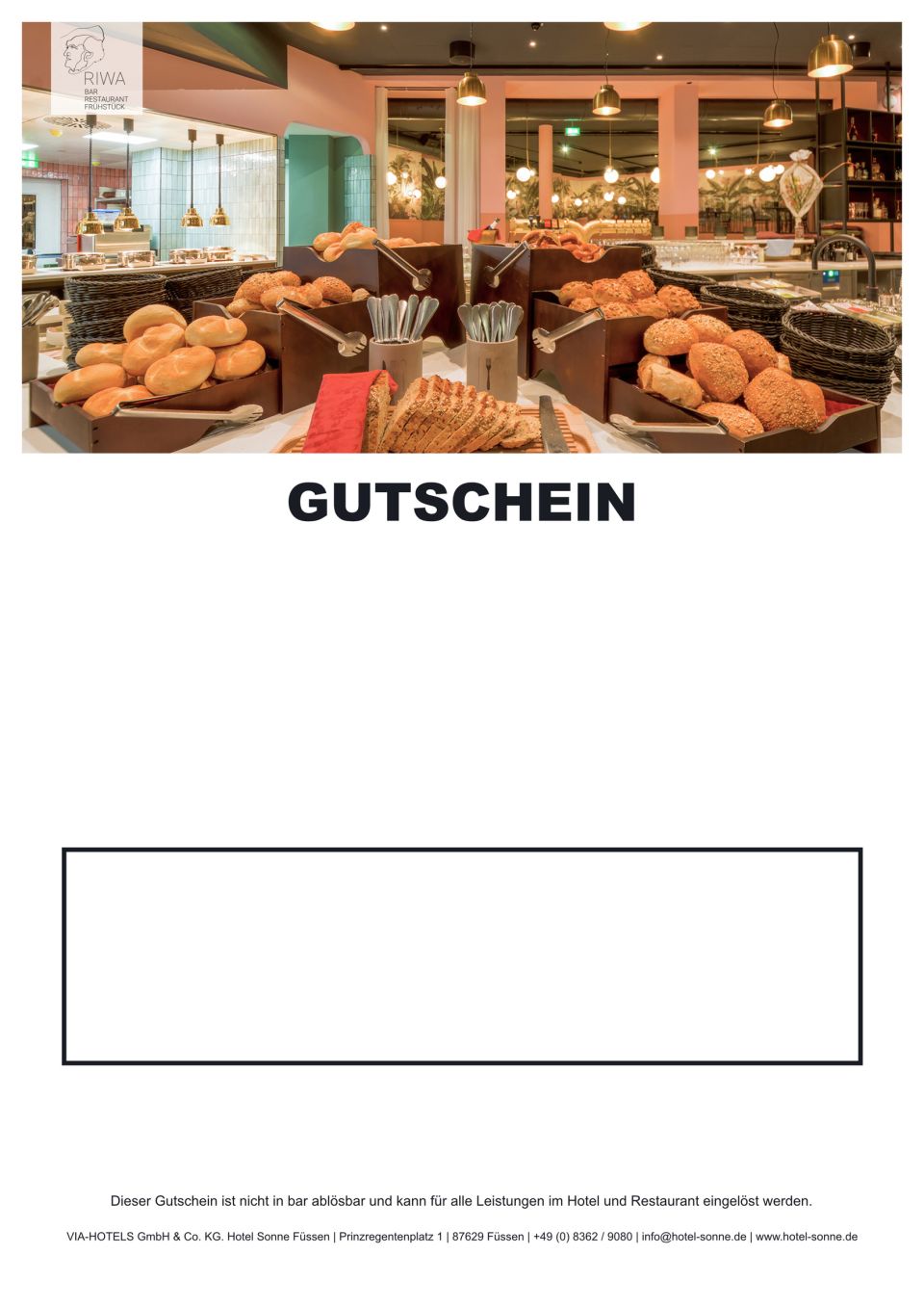 Unser Frühstücksbuffet ist 365 Tage im Jahr täglich von 7:00 bis 11:00 Uhr für euch geöffnet und an den Wochenenden sogar bis 11:30 Uhr. Bitte reserviert vorab unter der Telefonnummer 08362 - 90 80 einen Tisch. Vielen Dank und viel Spaß beim Verschenken! Euer RIWA-Team